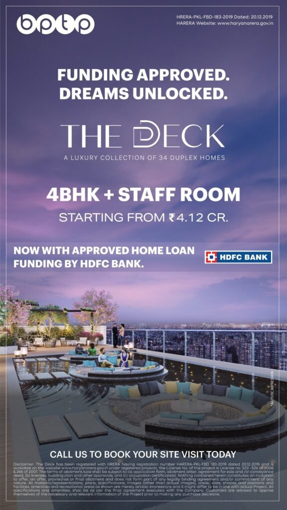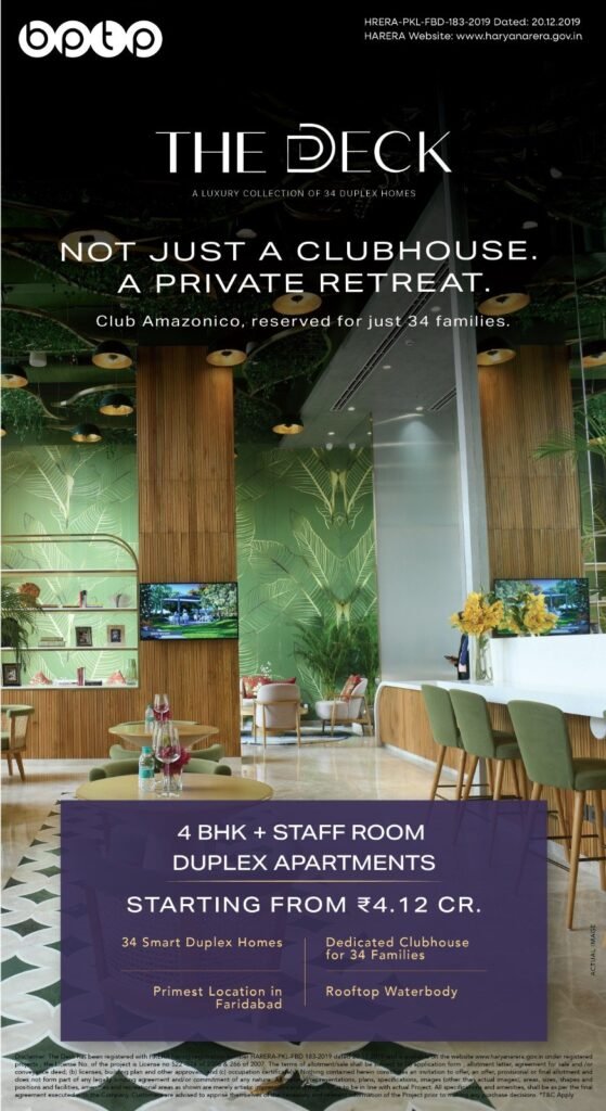 BPTP The Deck features 4 BHK duplex apartments with luxury finishes and modern amenities.